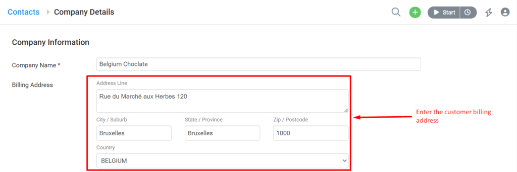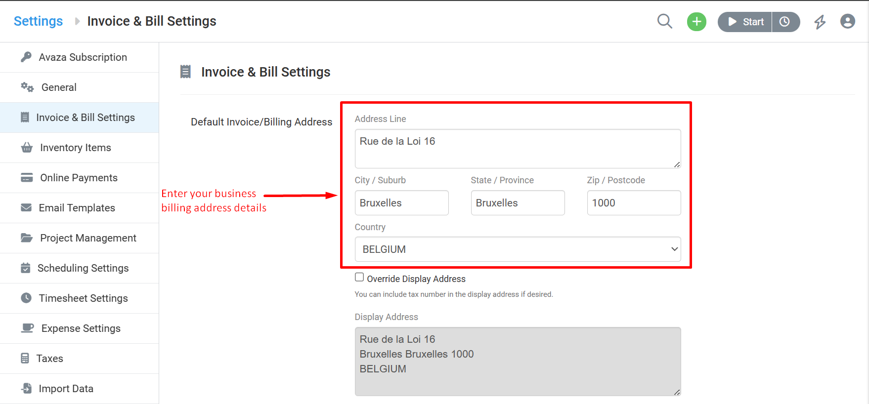 2. Ensure your Default Invoice/Billing Address reflects your official registered address.