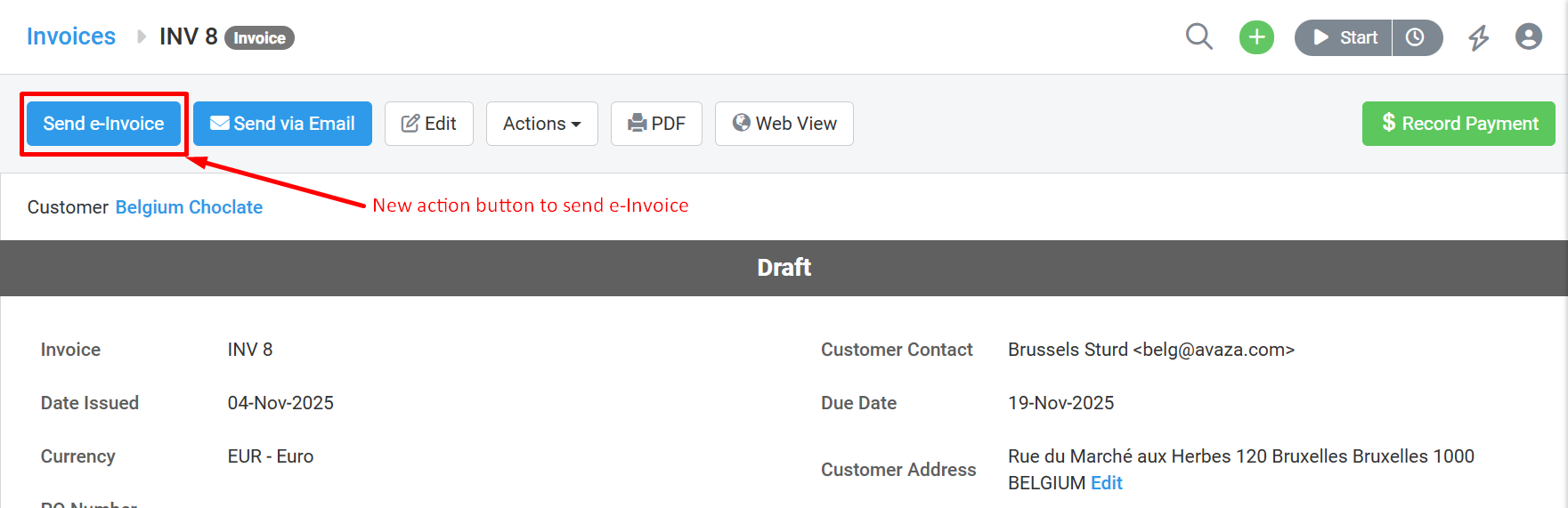 • The e-Invoicing feature will be enabled in your Avaza workspace.