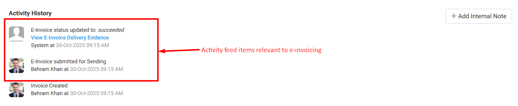 New Activity Feed on Invoice Details Page regarding E-invoice