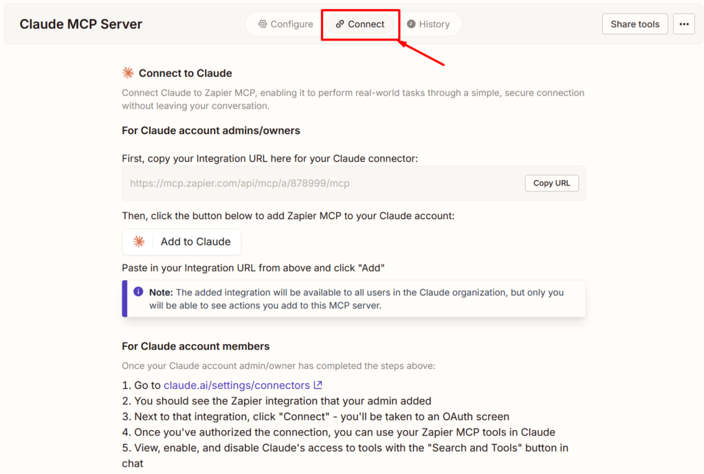 History Tab in Zapier MCP Server