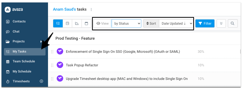 all tasksFigure: Access All Tasks View from the Projects Drop-Down on the Side Navigation