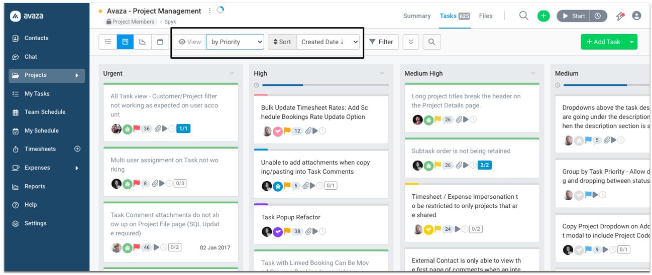 Several features in Avaza Projects help you keep track of task progress using visual aids.